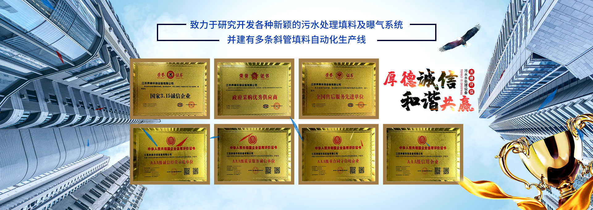 無錫太博環(huán)??萍加邢薰疚挥谖覈劽沫h(huán)保之鄉(xiāng)—宜興市高塍鎮(zhèn),專業(yè)生產(chǎn)各種加藥裝置,機(jī)械格柵,疊羅污泥脫水機(jī),mbr膜,填料曝氣器等污水水處理設(shè)備配件等,已有數(shù)十年的歷史。本公司著重致力于研究開發(fā)各種新穎的污水處理填料及曝氣系統(tǒng),并建有多條斜管填料自動化生產(chǎn)線。 多年來,我們視用戶為上帝,以誠信為本,以我們過硬的產(chǎn)品質(zhì)量為基礎(chǔ),為各地的環(huán)保同行及用戶提供了一批又一批質(zhì)優(yōu)價廉的環(huán)保配件。...